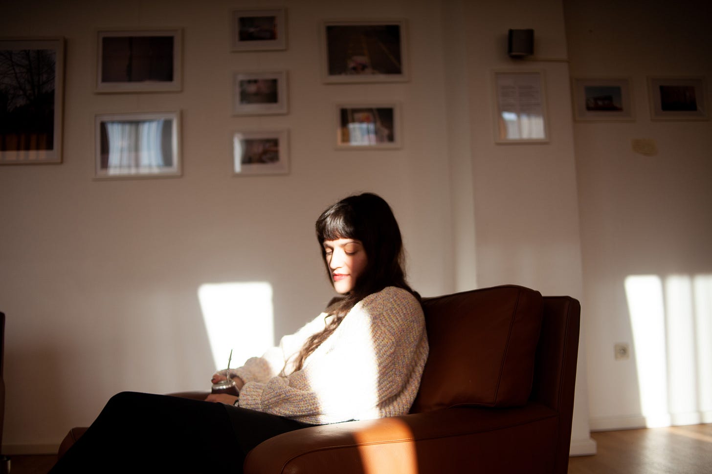 La cita fue con mate mediante durante una mañana no muy fría de noviembre. La sala, alojada en la embajada Argentina, era luminosa y amplia. El sol, que por suerte nos acompañaba, chocaba armónicamente sobre todas sus paredes blancas, filtrándose por las cortinas, dejando entrever los edificios de fuera en cada reflejo de las fotos.